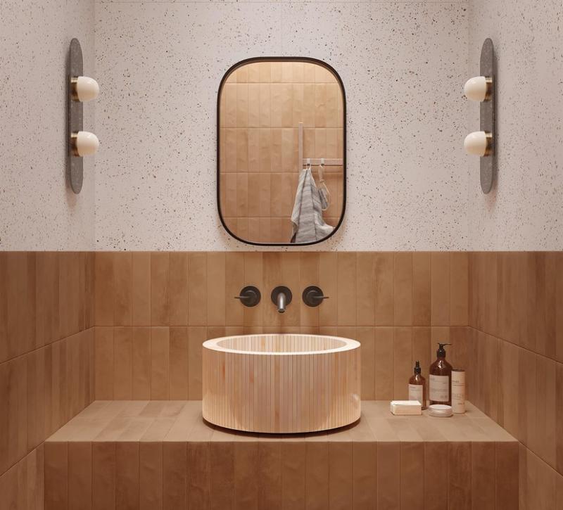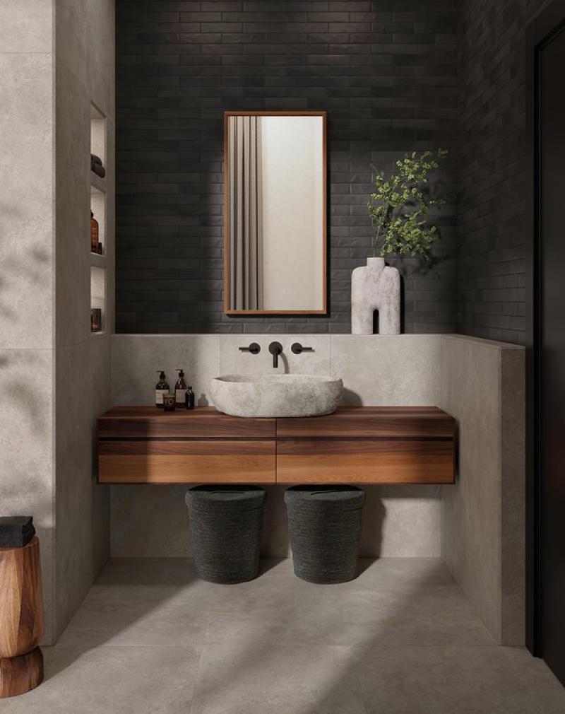 D’une imperfection parfaite, les briques Still offrent des vibrations riches en couleur et en matière, en libérant une grande énergie créative qui amplifie et dynamise l’espace.Chaleur méditerranéenne sur l’ensemble des murs et au sol. Le plaisir tactile de la brique Still Terra, exalté par la lumière, crée un mouvement parfait qui se prolonge harmonieusement dans les veines du grès effet bois Fapnest Natural, en créant un assortiment parfait.
